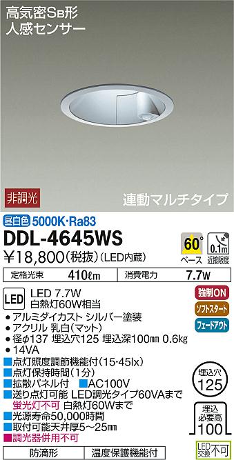 DAIKO Âç¸÷Åŵ¡ ¿Í´¶¥»¥ó¥µ¡¼ÉÕLED¥À¥¦¥ó¥é¥¤¥È DDL-4645WS
