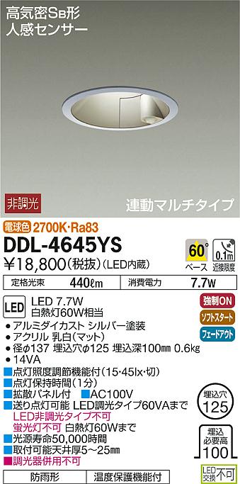 DAIKO Âç¸÷Åŵ¡ LED ¿Í´¶¥»¥ó¥µ¡¼ÉÕ¥À¥¦¥ó¥é¥¤¥È DDL-4645YS