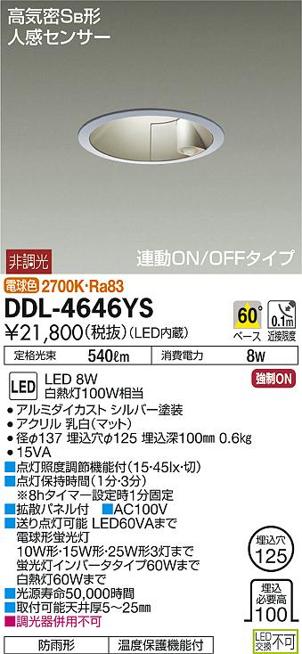 DAIKO Âç¸÷Åŵ¡ LED ¿Í´¶¥»¥ó¥µ¡¼ÉÕ¥À¥¦¥ó¥é¥¤¥È DDL-4646YS