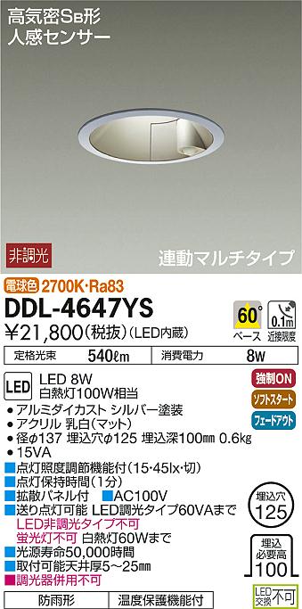 DAIKO Âç¸÷Åŵ¡ LED ¿Í´¶¥»¥ó¥µ¡¼ÉÕ¥À¥¦¥ó¥é¥¤¥È DDL-4647YS