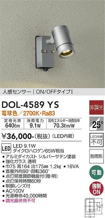 DAIKO Âç¸÷Åŵ¡ ¿Í´¶¥»¥ó¥µ¡¼ÉÕ¥¢¥¦¥È¥É¥¢¥¹¥Ý¥Ã¥È DOL-4589YS
