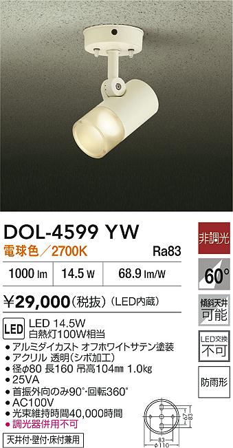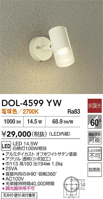 DAIKO Âç¸÷Åŵ¡ ¥¢¥¦¥È¥É¥¢¥¹¥Ý¥Ã¥È DOL-4599YW