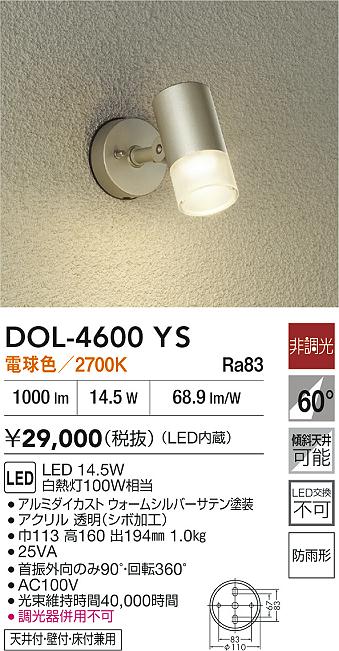 DAIKO Âç¸÷Åŵ¡ ¥¢¥¦¥È¥É¥¢¥¹¥Ý¥Ã¥È DOL-4600YS