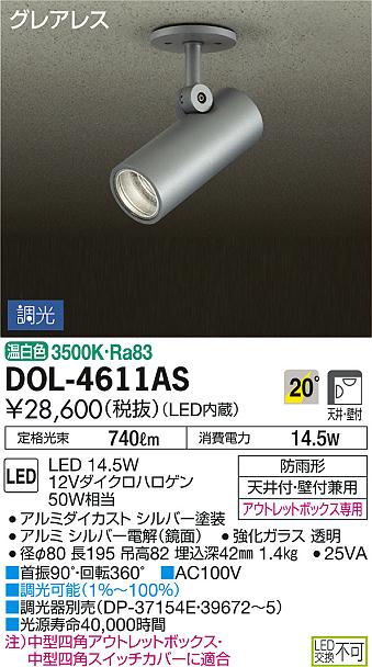 DAIKO Âç¸÷Åŵ¡ LED ¥¢¥¦¥È¥É¥¢¥¹¥Ý¥Ã¥È DOL-4611AS
