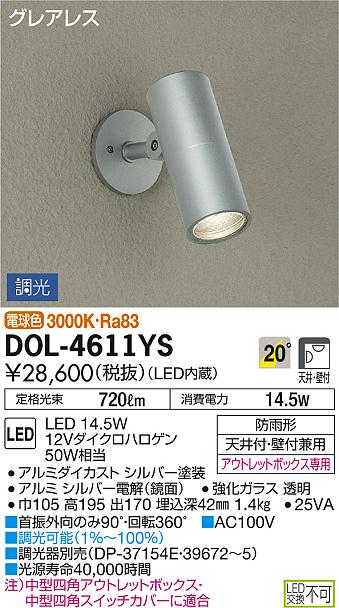 DAIKO Âç¸÷Åŵ¡ LED ¥¢¥¦¥È¥É¥¢¥¹¥Ý¥Ã¥È DOL-4611YS