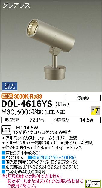 DAIKO Âç¸÷Åŵ¡ LED ¥¢¥¦¥È¥É¥¢¥¹¥Ý¥Ã¥È DOL-4616YS