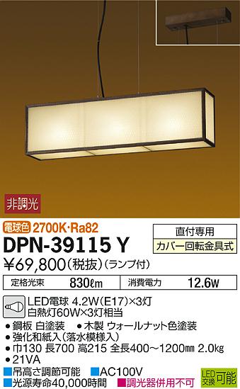 DAIKO Âç¸÷Åŵ¡ ÏÂÉ÷¥Ú¥ó¥À¥ó¥È DPN-39115Y