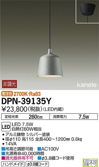 DAIKO Âç¸÷Åŵ¡ LED¾®·¿¥Ú¥ó¥À¥ó¥È DPN-39135Y