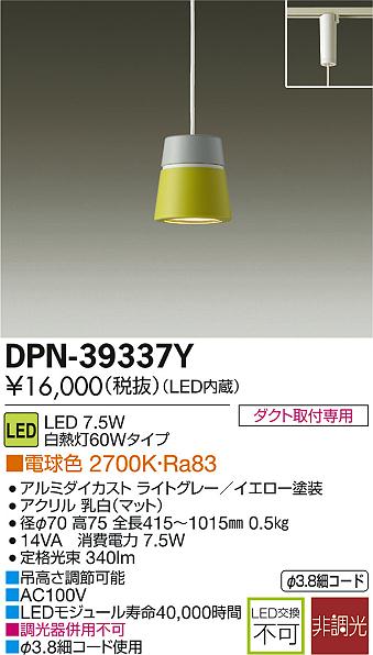 DAIKO Âç¸÷Åŵ¡ LED¾®·¿¥Ú¥ó¥À¥ó¥È DPN-39337Y