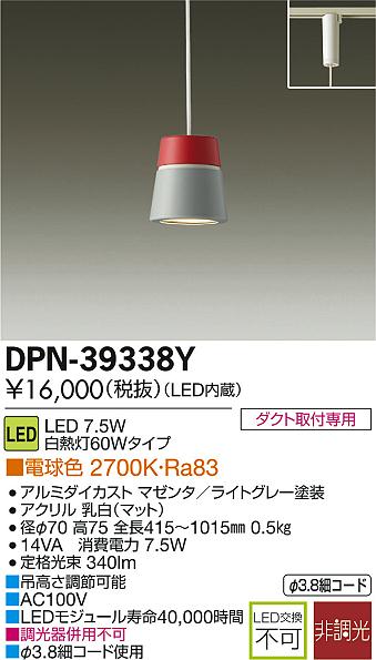 DAIKO Âç¸÷Åŵ¡ LED¾®·¿¥Ú¥ó¥À¥ó¥È DPN-39338Y