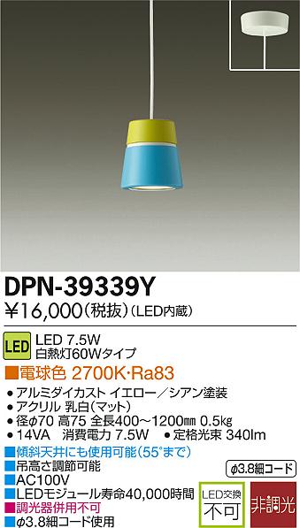 DAIKO Âç¸÷Åŵ¡ LED¾®·¿¥Ú¥ó¥À¥ó¥È DPN-39339Y