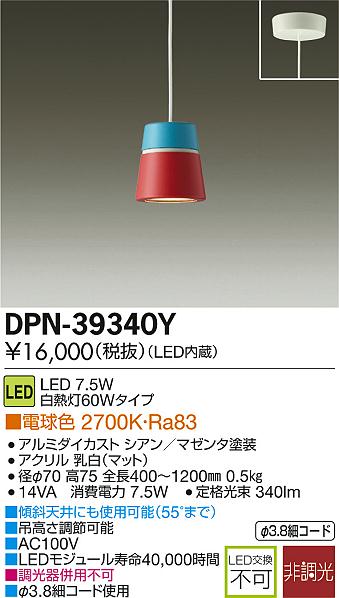 DAIKO Âç¸÷Åŵ¡ LED¾®·¿¥Ú¥ó¥À¥ó¥È DPN-39340Y