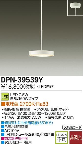 DAIKO Âç¸÷Åŵ¡ LED¾®·¿¥Ú¥ó¥À¥ó¥È DPN-39539Y