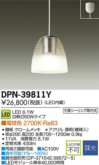DAIKO Âç¸÷Åŵ¡ LED¾®·¿¥Ú¥ó¥À¥ó¥È DPN-39811Y