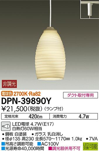 DAIKO Âç¸÷Åŵ¡ LED¾®·¿¥Ú¥ó¥À¥ó¥È DPN-39890Y