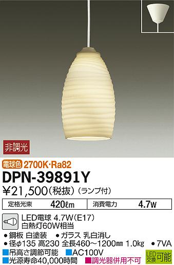 DAIKO Âç¸÷Åŵ¡ LED¾®·¿¥Ú¥ó¥À¥ó¥È DPN-39891Y