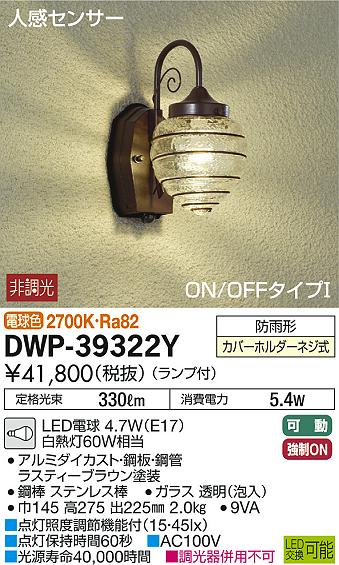DAIKO Âç¸÷Åŵ¡ LED ¿Í´¶¥»¥ó¥µ¡¼ÉÕ¥¢¥¦¥È¥É¥¢¥é¥¤¥È DWP-39322Y