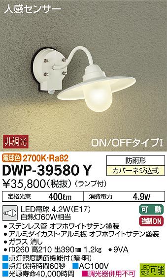 DAIKO Âç¸÷Åŵ¡ ¿Í´¶¥»¥ó¥µ¡¼ÉÕ¥¢¥¦¥È¥É¥¢¥é¥¤¥È DWP-39580Y