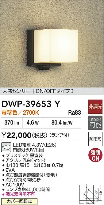 DAIKO Âç¸÷Åŵ¡ ¿Í´¶¥»¥ó¥µ¡¼ÉÕ¥¢¥¦¥È¥É¥¢¥é¥¤¥È DWP-39653Y