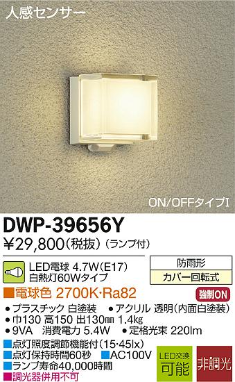 DAIKO Âç¸÷Åŵ¡ ¿Í´¶¥»¥ó¥µ¡¼ÉÕLED¥¢¥¦¥È¥É¥¢¥é¥¤¥È DWP-39656Y