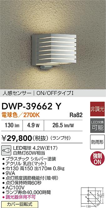 DAIKO Âç¸÷Åŵ¡ ¿Í´¶¥»¥ó¥µ¡¼ÉÕ¥¢¥¦¥È¥É¥¢¥é¥¤¥È DWP-39662Y
