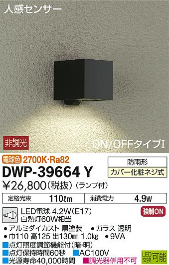 DAIKO Âç¸÷Åŵ¡ ¿Í´¶¥»¥ó¥µ¡¼ÉÕ¥¢¥¦¥È¥É¥¢¥é¥¤¥È DWP-39664Y