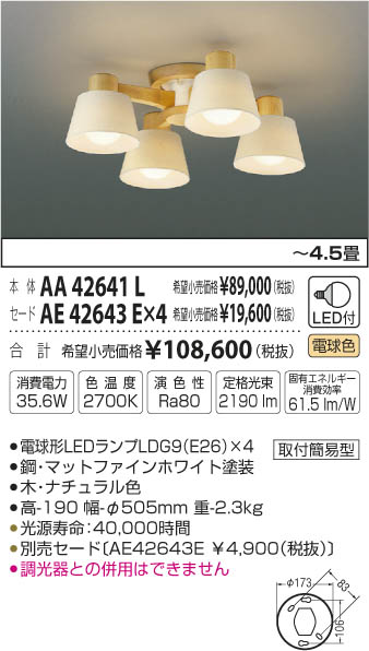 LED35.6W|¡üÅŵå·ÁLED¥é¥ó¥×LDG9¡ÊE26¡Ë¡ß4|¡ü¹Ý¡¦¥Þ¥Ã¥È¥Õ¥¡¥¤¥ó¥Û¥ï¥¤¥ÈÅÉÁõ|¡üÌÚ¡¦¥Ê¥Á¥å¥é¥ë¿§|¡É¡ü¹â-190 Éý-¦Õ505mm ½Å-2.3kg¡É|¡ü¾ÃÈñÅÅÎÏ:35.6W|¡ü¿§²¹ÅÙ:2700K|¡ü±é¿§À:Ra80|¡É¡üÄê³Ê¸÷«:2¡¤920 lm|2190 lm¡É|¡É¡ü¸ÇÍ¥¨¥Í¥ë¥®¡¼¾ÃÈñ¸úΨ:82.0 lm/W|61.5 lm/W¡É|¡É¡ü¸÷¸»¼÷Ì¿¡§40¡¤000»þ´Ö¡É|¡É¡üÊÌÇ䥻¡¼¥É¡ÌAE42643E ¡ï4¡¤900¡ÊÀÇÈ´¡Ë¡Í¡É|¡üÄ´¸÷´ï¤È¤ÎÊ»ÍѤϤǤ¤Þ¤»¤ó ¡Á8¾ö