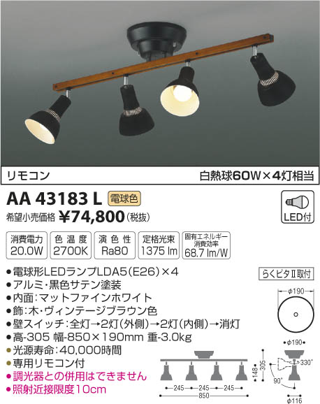 ¥³¥¤¥º¥ß¾ÈÌÀ KOIZUMI ²Äư¥·¥ã¥ó¥Ç¥ê¥¢ LED¡ÊÅŵ忧¡Ë AA43183L