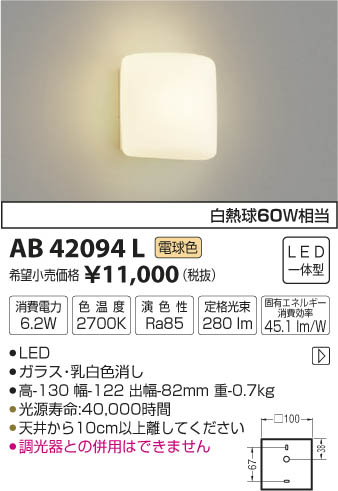¥³¥¤¥º¥ß¾ÈÌÀ KOIZUMI ¥Ö¥é¥±¥Ã¥È LED¡ÊÅŵ忧¡Ë AB42094L