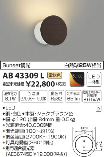 ¥³¥¤¥º¥ß¾ÈÌÀ KOIZUMI ¥Ö¥é¥±¥Ã¥È LED¡ÊÅŵ忧¡Ë AB43309L