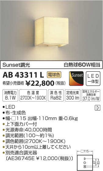 ÇòÇ®µå60WÁêÅö|¡üLED|¡üÉÛ¡¦À¸À®¿§|¡É¡üÉý-¢¢115 ½ÐÉý-110mm ½Å-0.6kg¡É|¡ü¾ÃÈñÅÅÎÏ:8.1W|¡ü¿§²¹ÅÙ:2700K¡Á1900K|¡ü±é¿§À:Ra82|¡É¡üÄê³Ê¸÷«:300 lm¡É|¡É¡ü¸ÇÍ¥¨¥Í¥ë¥®¡¼¾ÃÈñ¸úΨ:37.0 lm/W¡É|¡ü¾å²¼ÌÌ¥«¥Ð¡¼ÉÕ|¡É¡ü¸÷¸»¼÷Ì¿¡§40¡¤000»þ´Ö¡É|¡üÄ´¸÷ÈϰϡÊ100¡ÁÌó1¡ó¡Ë|¡üÄ´¿§ÈϰϡÊ2700K¡Á1900K¡Ë|¡üÅ·°æ¤«¤é10cm°Ê¾åÎ¥¤·¤Æ¤¯¤À¤µ¤¤|¡É¡üÊÌÇäŬ¹çÄ´¸÷´ï¡ÌAE36745E ¡ï12¡¤000¡ÊÀÇÈ´¡Ë¡Í¡É
