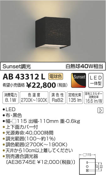 ÇòÇ®µå40WÁêÅö|¡üLED|¡üÉÛ¡¦¹õ¿§|¡É¡üÉý-¢¢115 ½ÐÉý-110mm ½Å-0.6kg¡É|¡ü¾ÃÈñÅÅÎÏ:8.1W|¡ü¿§²¹ÅÙ:2700K¡Á1900K|¡ü±é¿§À:Ra82|¡É¡üÄê³Ê¸÷«:135 lm¡É|¡É¡ü¸ÇÍ¥¨¥Í¥ë¥®¡¼¾ÃÈñ¸úΨ:16.6 lm/W¡É|¡ü¾å²¼ÌÌ¥«¥Ð¡¼ÉÕ|¡É¡ü¸÷¸»¼÷Ì¿¡§40¡¤000»þ´Ö¡É|¡üÄ´¸÷ÈϰϡÊ100¡ÁÌó1¡ó¡Ë|¡üÄ´¿§ÈϰϡÊ2700K¡Á1900K¡Ë|¡üÅ·°æ¤«¤é10cm°Ê¾åÎ¥¤·¤Æ¤¯¤À¤µ¤¤|¡É¡üÊÌÇäŬ¹çÄ´¸÷´ï¡ÌAE36745E ¡ï12¡¤000¡ÊÀÇÈ´¡Ë¡Í¡É