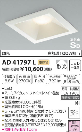 ¥³¥¤¥º¥ß¾ÈÌÀ KOIZUMI ¹âµ¤Ì©¥À¥¦¥ó¥é¥¤¥È LED¡ÊÅŵ忧¡Ë AD41797L