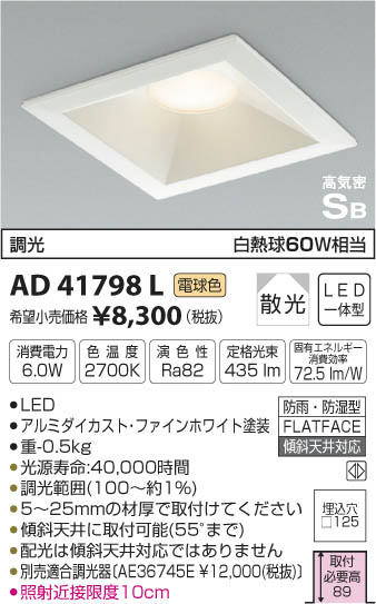 ¥³¥¤¥º¥ß¾ÈÌÀ KOIZUMI ¹âµ¤Ì©¥À¥¦¥ó¥é¥¤¥È LED¡ÊÅŵ忧¡Ë AD41798L