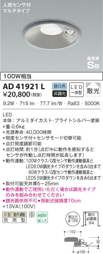 KOIZUMI ¥³¥¤¥º¥ß¾ÈÌÀ ¹âµ¤Ì©¥À¥¦¥ó¥é¥¤¥È AD41921L