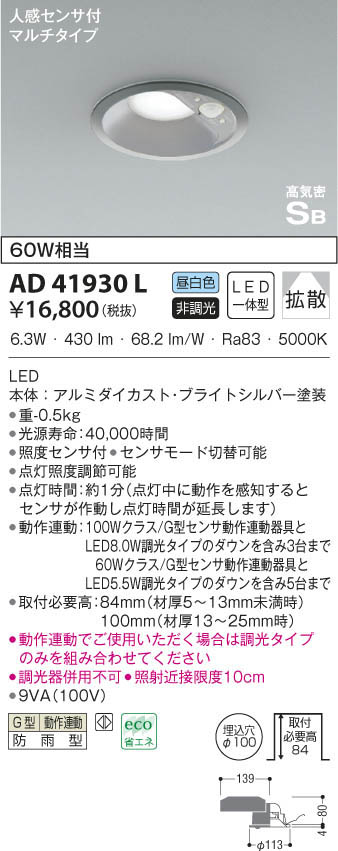 KOIZUMI ¥³¥¤¥º¥ß¾ÈÌÀ ¹âµ¤Ì©¥À¥¦¥ó¥é¥¤¥È AD41930L