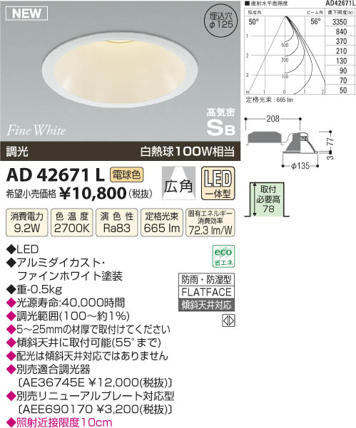 ¥³¥¤¥º¥ß¾ÈÌÀ KOIZUMI ¹âµ¤Ì©¥À¥¦¥ó¥é¥¤¥È LED AD42671L