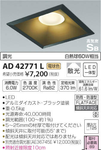 ¥³¥¤¥º¥ß¾ÈÌÀ KOIZUMI LED ¹âµ¤Ì©¥À¥¦¥ó¥é¥¤¥È AD42771L