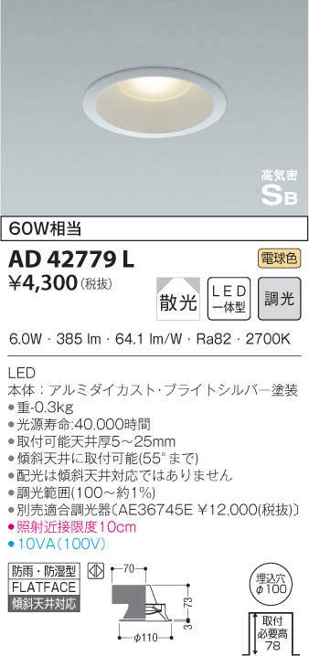 KOIZUMI ¥³¥¤¥º¥ß¾ÈÌÀ ¹âµ¤Ì©¥À¥¦¥ó¥é¥¤¥È AD42779L