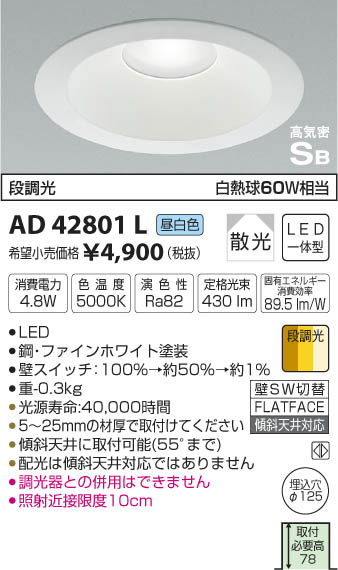 ¥³¥¤¥º¥ß¾ÈÌÀ KOIZUMI ¹âµ¤Ì©¥À¥¦¥ó¥é¥¤¥È LED¡ÊÃëÇò¿§¡Ë AD42801L