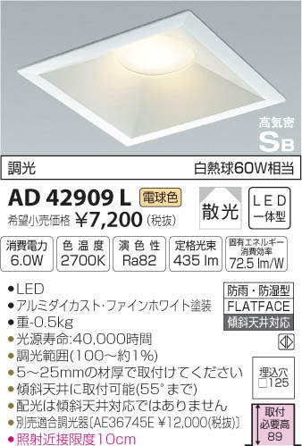 ¥³¥¤¥º¥ß¾ÈÌÀ KOIZUMI LED ¹âµ¤Ì©¥À¥¦¥ó¥é¥¤¥È AD42909L