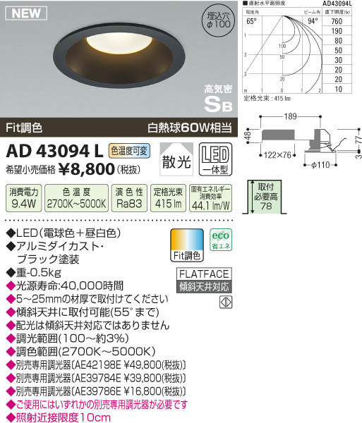 ¥³¥¤¥º¥ß¾ÈÌÀ KOIZUMI ¹âµ¤Ì©¥À¥¦¥ó¥é¥¤¥È LED AD43094L