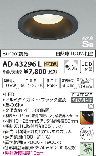 ÇòÇ®µå100WÁêÅö|¡üLED|¡ü¥¢¥ë¥ß¥À¥¤¥«¥¹¥È¡¦¥Ö¥é¥Ã¥¯ÅÉÁõ|¡É¡üÉý-¦Õ110 ½ÐÉý-3 Ëä¹þ·ê·Â-¦Õ100 Ëä¹þ¹â-62 ¼èÉÕɬÍ×¹â-78mm ½Å-0.6kg¡É|¡ü¾ÃÈñÅÅÎÏ:10.8W|¡ü¿§²¹ÅÙ:1900K¡Á2700K|¡ü±é¿§À:Ra82|¡É¡üÄê³Ê¸÷«:550 lm¡É|¡É¡ü¸ÇÍ¥¨¥Í¥ë¥®¡¼¾ÃÈñ¸úΨ:50.9 lm/W¡É|¡É¡ü¸÷¸»¼÷Ì¿¡§40¡¤000»þ´Ö¡É|¡üºà¸ü5¡Á19mm̤Ëþ¤Î»þ¡¢¼èÉÕɬÍ×¹â78mm|¡üºà¸ü19¡Á25mm¤Î»þ¡¢¼èÉÕɬÍ×¹â89mm|¡ü·¹¼ÐÅ·°æ¤Ë¼èÉÕ²Äǽ¡Ê55¡ë¤Þ¤Ç¡Ë|¡üÇÛ¸÷¤Ï·¹¼ÐÅ·°æÂбþ¤Ç¤Ï¤¢¤ê¤Þ¤»¤ó|¡üÄ´¸÷ÈϰϡÊ100¡ÁÌó1%¡Ë|¡üÄ´¿§ÈϰϡÊ2700K¡Á1900K¡Ë|¡É¡üÊÌÇäŬ¹çÄ´¸÷´ï¡ÌAE36745E ¡ï12¡¤000¡ÊÀÇÈ´¡Ë¡Í¡É|¡ü¾È¼Í¶áÀܸÂÅÙ10cm