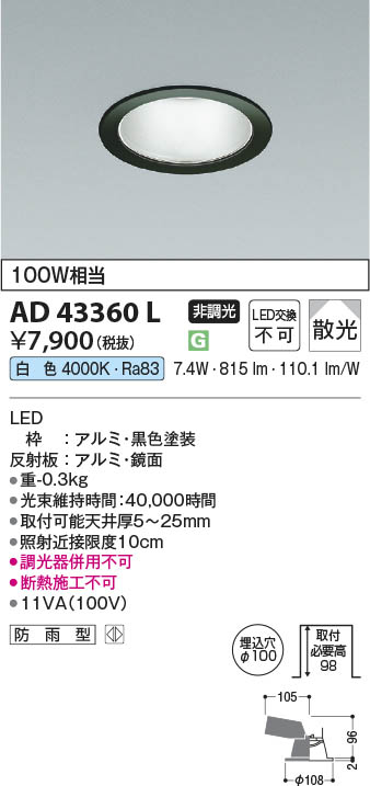 Koizumi ¥³¥¤¥º¥ß¾ÈÌÀ LED¥À¥¦¥ó¥é¥¤¥È AD43360L