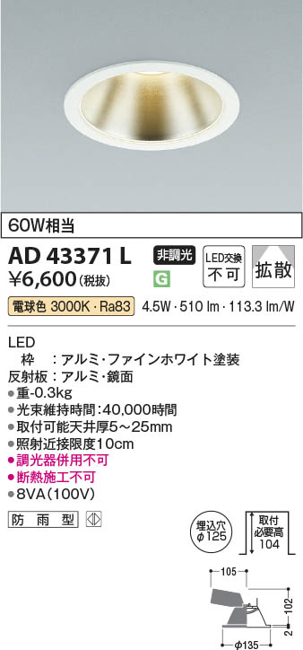 Koizumi ¥³¥¤¥º¥ß¾ÈÌÀ LED¥À¥¦¥ó¥é¥¤¥È AD43371L