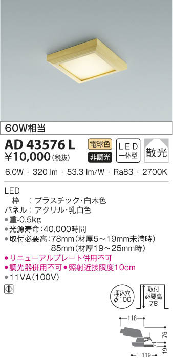 KOIZUMI ¥³¥¤¥º¥ß¾ÈÌÀ £Í·Á¥À¥¦¥ó¥é¥¤¥È AD43576L
