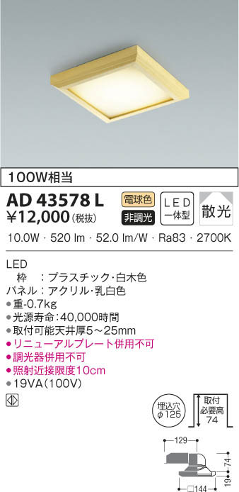 KOIZUMI ¥³¥¤¥º¥ß¾ÈÌÀ £Í·Á¥À¥¦¥ó¥é¥¤¥È AD43578L
