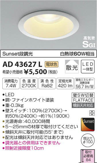 ¥³¥¤¥º¥ß¾ÈÌÀ KOIZUMI ¹âµ¤Ì©¥À¥¦¥ó¥é¥¤¥È LED¡ÊÅŵ忧¡Ë AD43627L