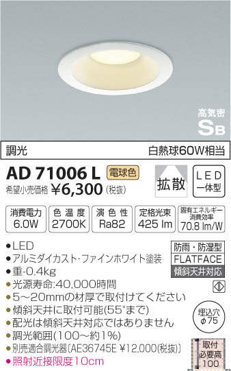 ¥³¥¤¥º¥ß¾ÈÌÀ KOIZUMI LED Ëɱ«Ëɼ¾·¿¥À¥¦¥ó¥é¥¤¥È AD71006L