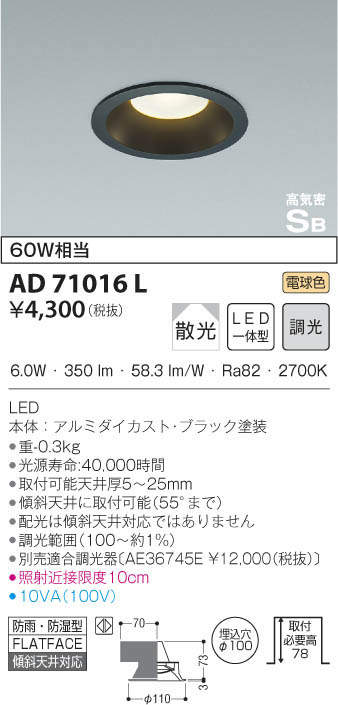 KOIZUMI ¥³¥¤¥º¥ß¾ÈÌÀ ¹âµ¤Ì©¥À¥¦¥ó¥é¥¤¥È AD71016L
